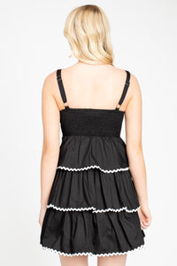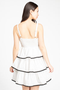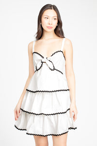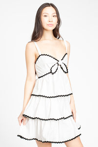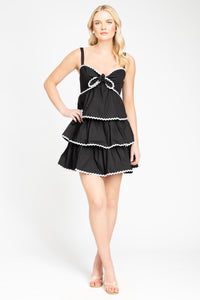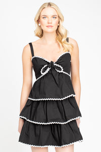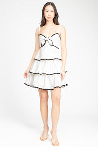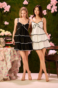 Flirty and fun, the Lavinia Tiered Mini Dress is your go-to for effortless style. Featuring a playful front tie knot and a flattering sweetheart neckline, it’s designed to turn heads. The contrast stitching adds a bold touch, outlining each tier of the skirt for a dynamic, eye-catching look. Lightweight and breezy, this dress is perfect for sunny days, brunch dates, or spontaneous weekend getaways.