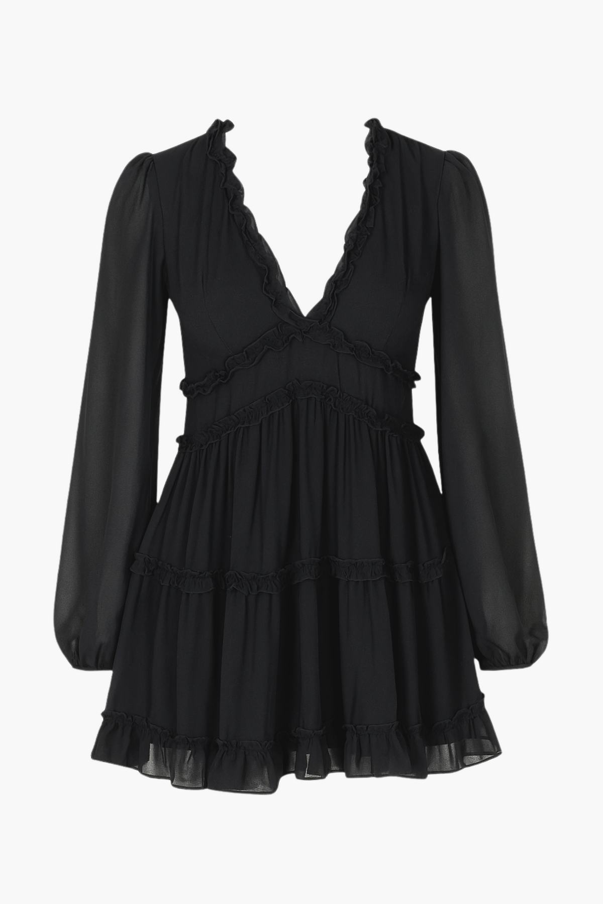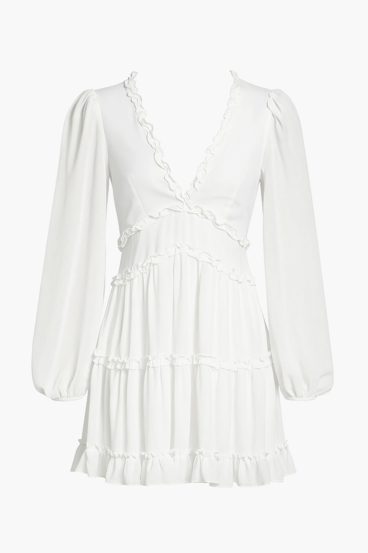 - V-neckline with ruffle trim