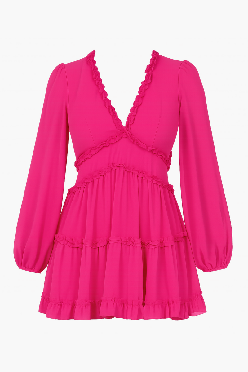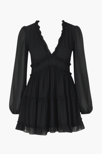 Be your own style icon with the Mackenzie Ruffle Trim Mini Dress! This adorably chic mini dress features a v-neckline with a flirty ruffle trim, relaxed-fit long sleeves and an elastic cinched cuff. The open back detail will get hearts racing and the mini hem will leave a lasting impression on any occasion.