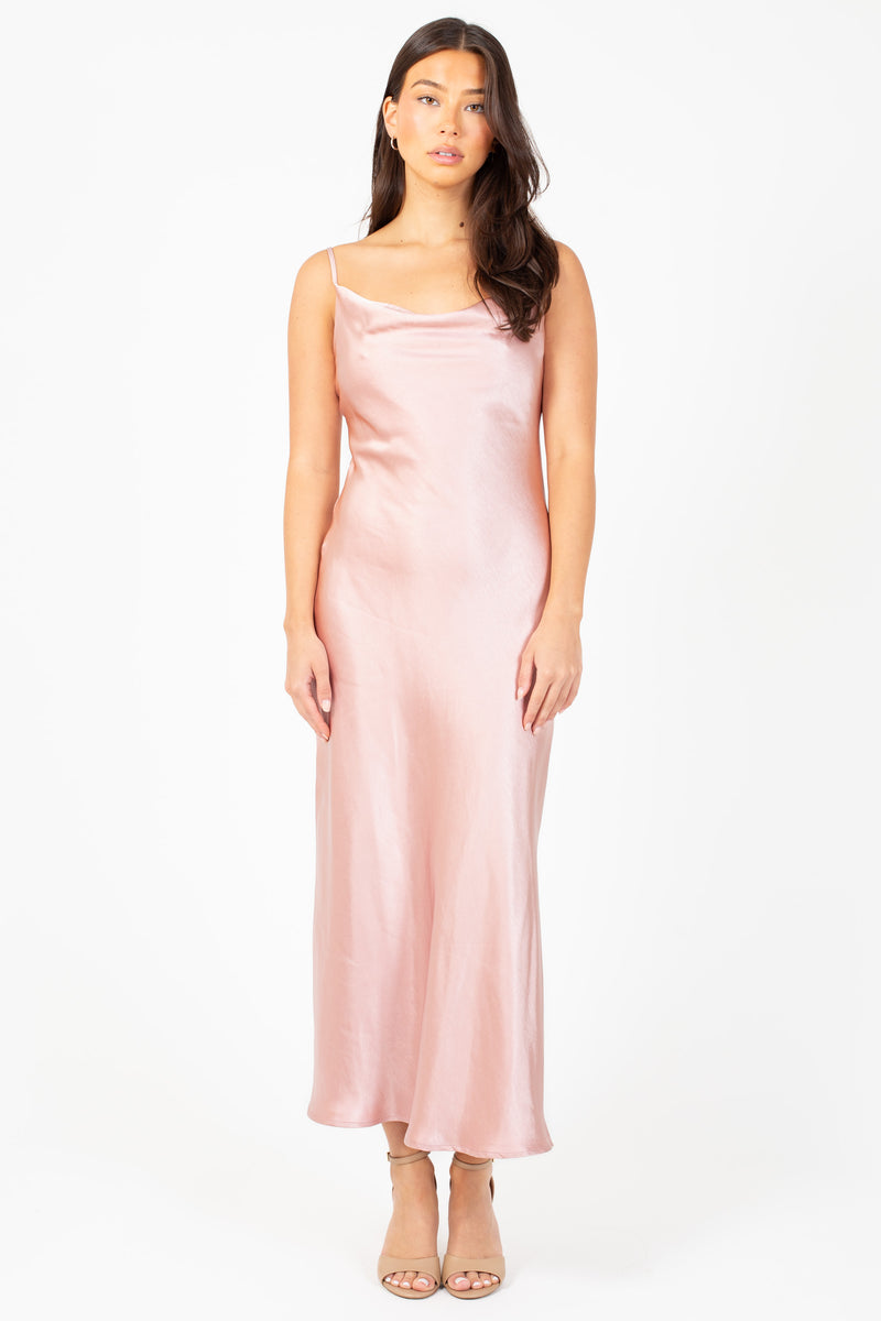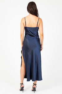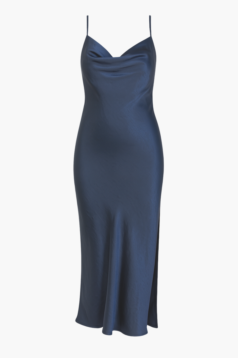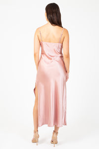 There's no denying that the Jillian Side Slit Midi Dress has a sexy and laidback look! This gorgeous satin dress features a draped neckline with spaghetti straps that fall into a long sleek silhouette with an alluring side slit.