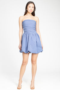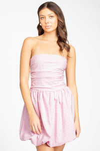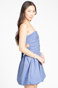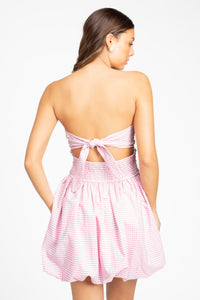 Bring fun and flair to your wardrobe with the Clarissa Gingham Bubble Hem Mini Dress. Featuring a classic gingham print and a bow on the back, this dress combines timeless charm with modern style. The strapless design highlights your shoulders and neckline, while the playful bubble hem adds volume and movement to the skirt. Perfect for any occasion that calls for a touch of whimsy and playfulness.