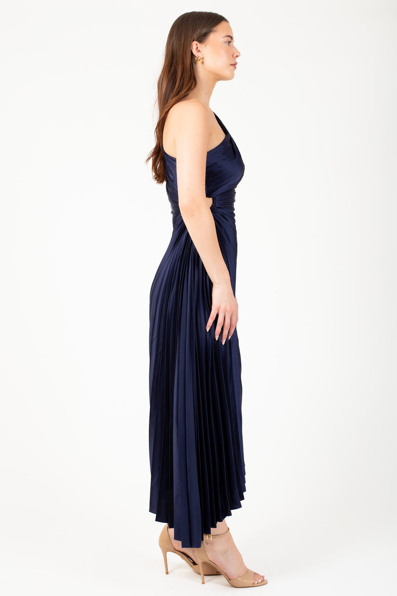 Reagan One Shoulder Pleated Hi Lo Maxi Dress